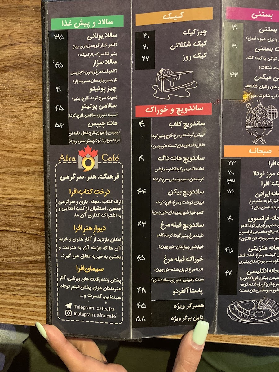 Afra Café Menu